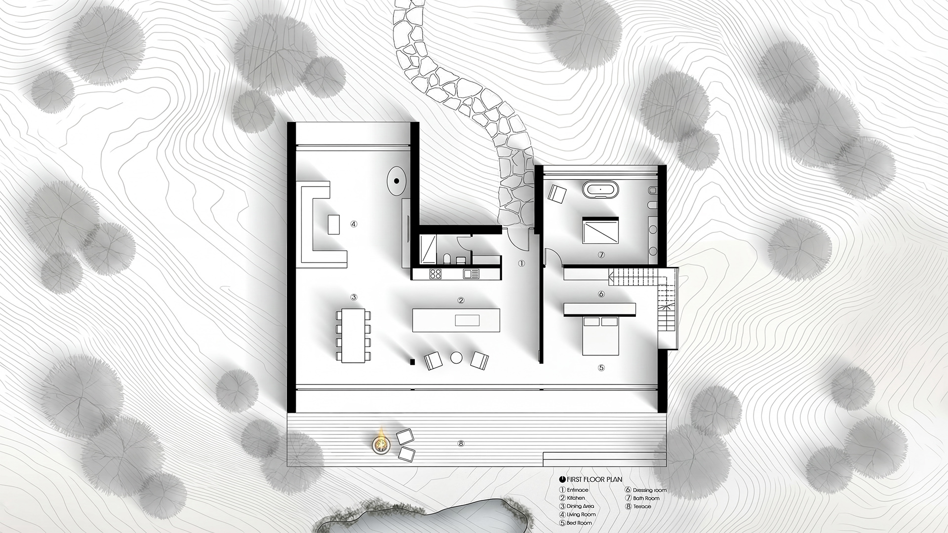 Inspiriert durch den Wald und dem blickgeschützten Raum. Die Erschaffung von lichtdurchfluteten Innenräumen mit großzügiger Verglasung. Die Natur im Haus.